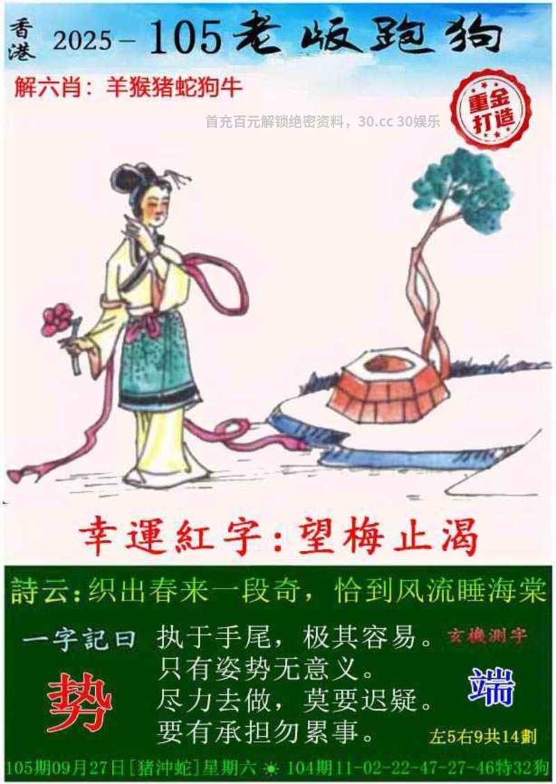 101期:今期牛马狗看定,特碼旺大合单出开蛇25准 ①杀肖:龙鼠猪 ③大数+合单 |